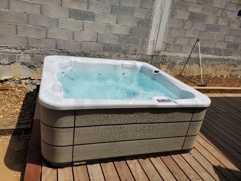 Construction d'une terrasse en bois exotique et pose d'un SPA
