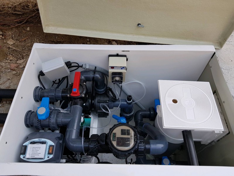 filtration pour piscine dans le local technique à Cabriès.Dans un premier temps nous avons installé une